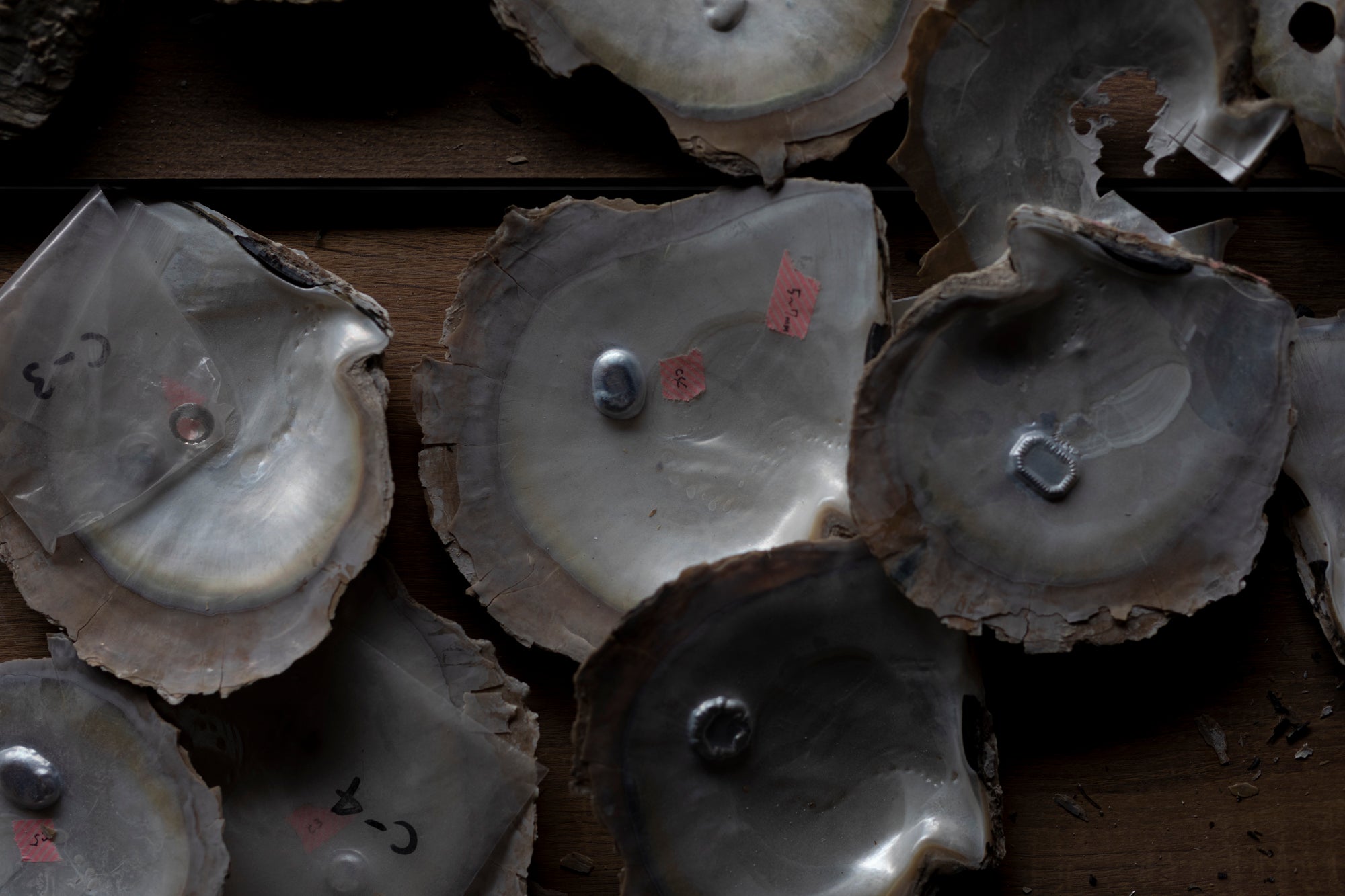 アパレル業界ではファーやレザーとして使用する嗜好品目的での動物飼育が一般的にタブー視されています。私たちも真珠の養殖に関わったことで「私たちが真珠をデザインし養殖することで命を犠牲にしている」という葛藤が生まれました。この葛藤と向き合い導きだしたのが、「我々が養殖する真珠貝については通常廃棄される母貝まで大切にデザインし、ジュエリーに仕立てあげることで廃棄物を出さない」という答えでした。そのような経緯をたどり、自ら養殖する真珠とその母貝をデザインするという独自性の高いジュエリーブランドが誕生しました。