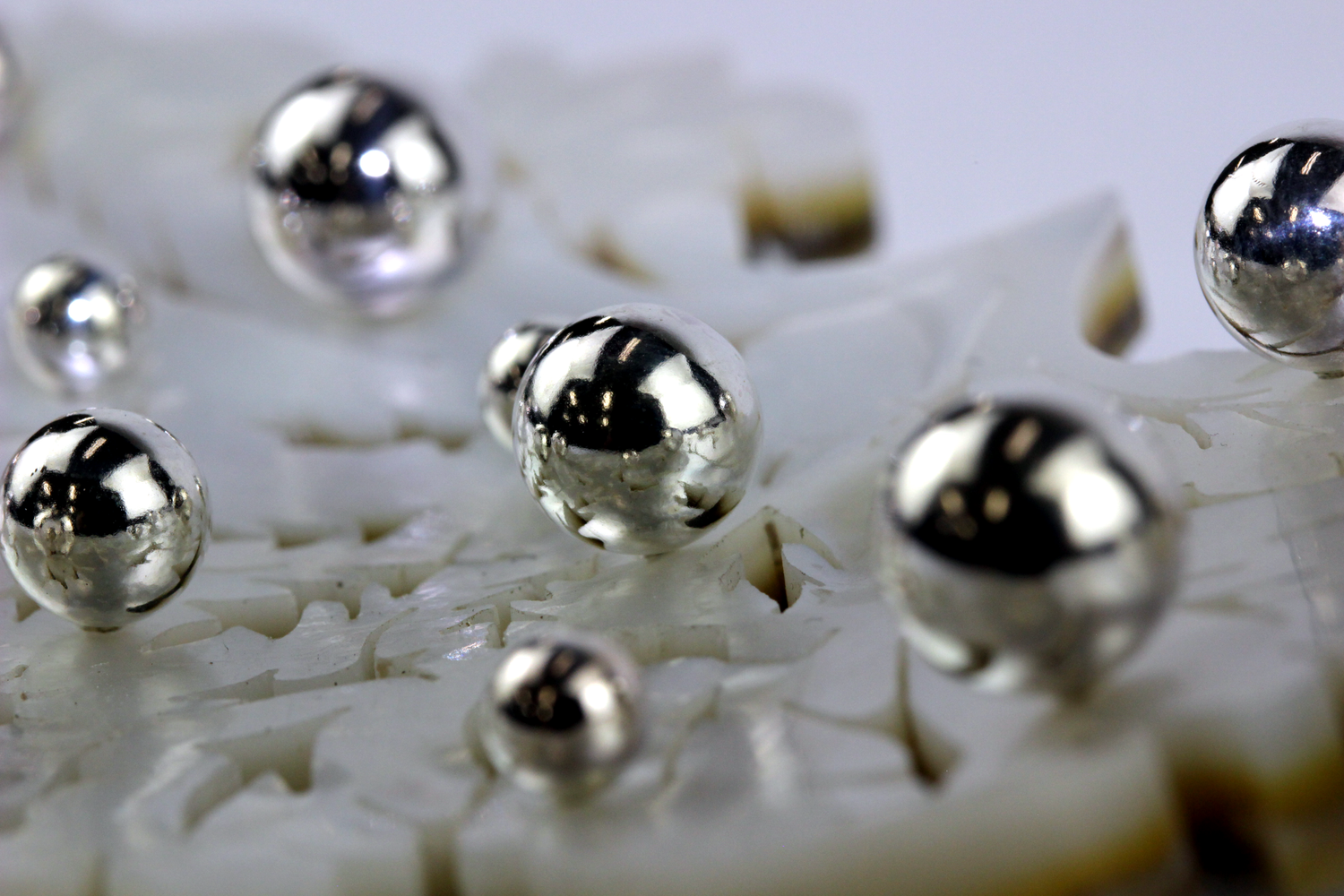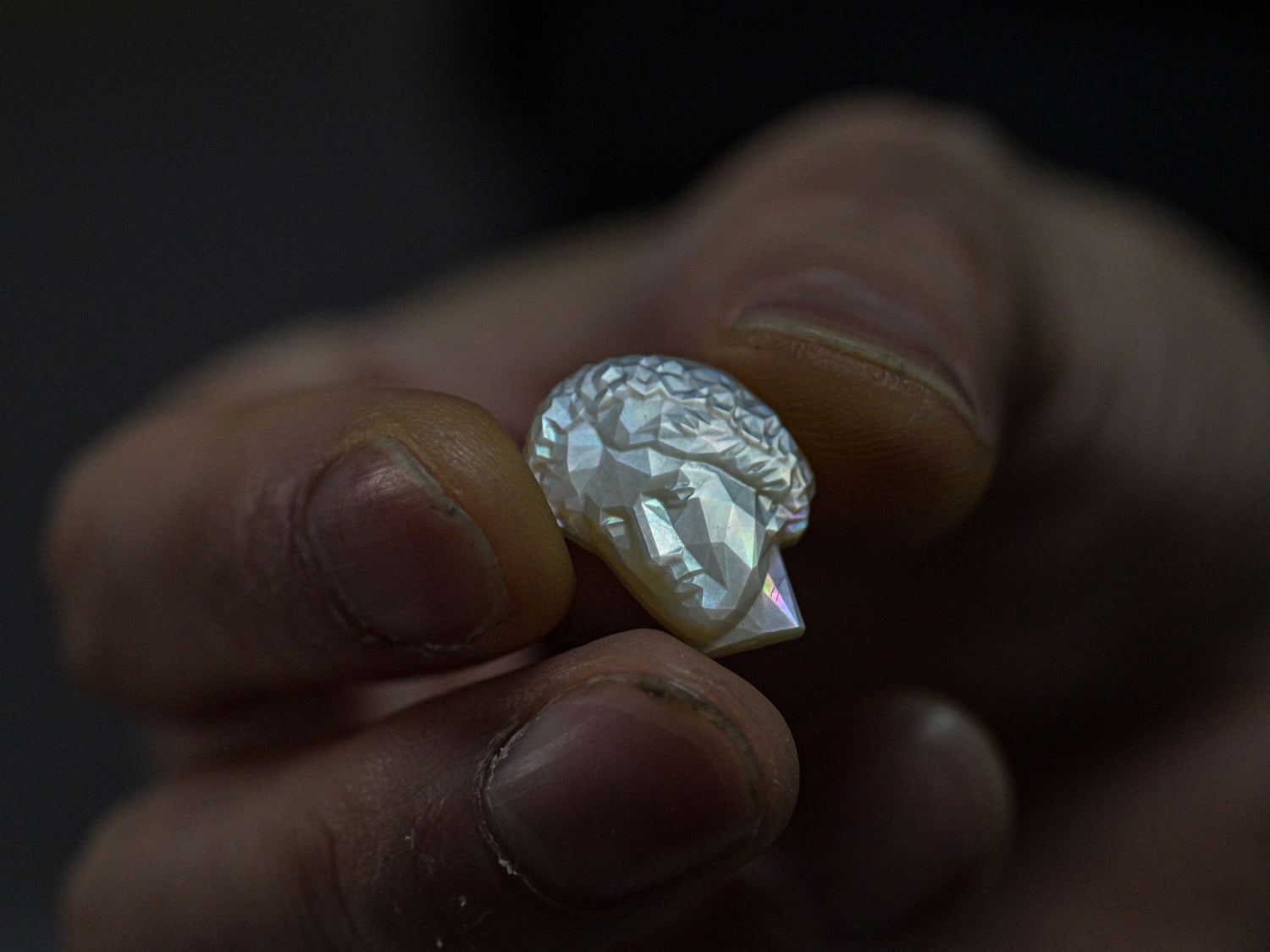 試験に2年以上費やして自由な形状の真珠養殖に成功。高精度3Dプリンターを用いて文字や図形を造形し、その周囲に美しい真珠層を形成する特許を2021年に取得しました。その特許技術を用いて、宝石に真珠を被せるように組み合わせた、独創的でエレガントな真珠ジュエリーを提案します。
