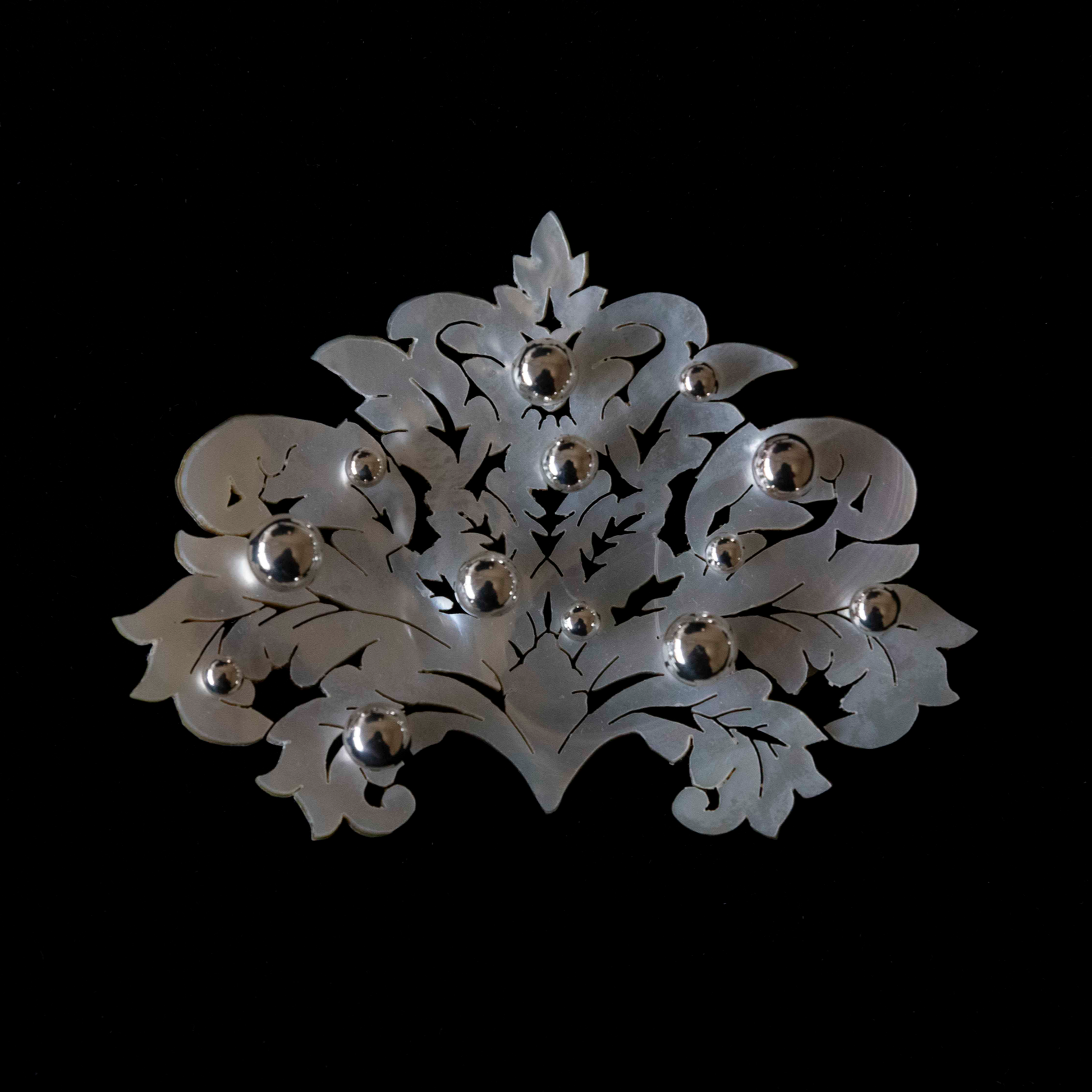 Material:silver, mother of pearl, rhodium plating,