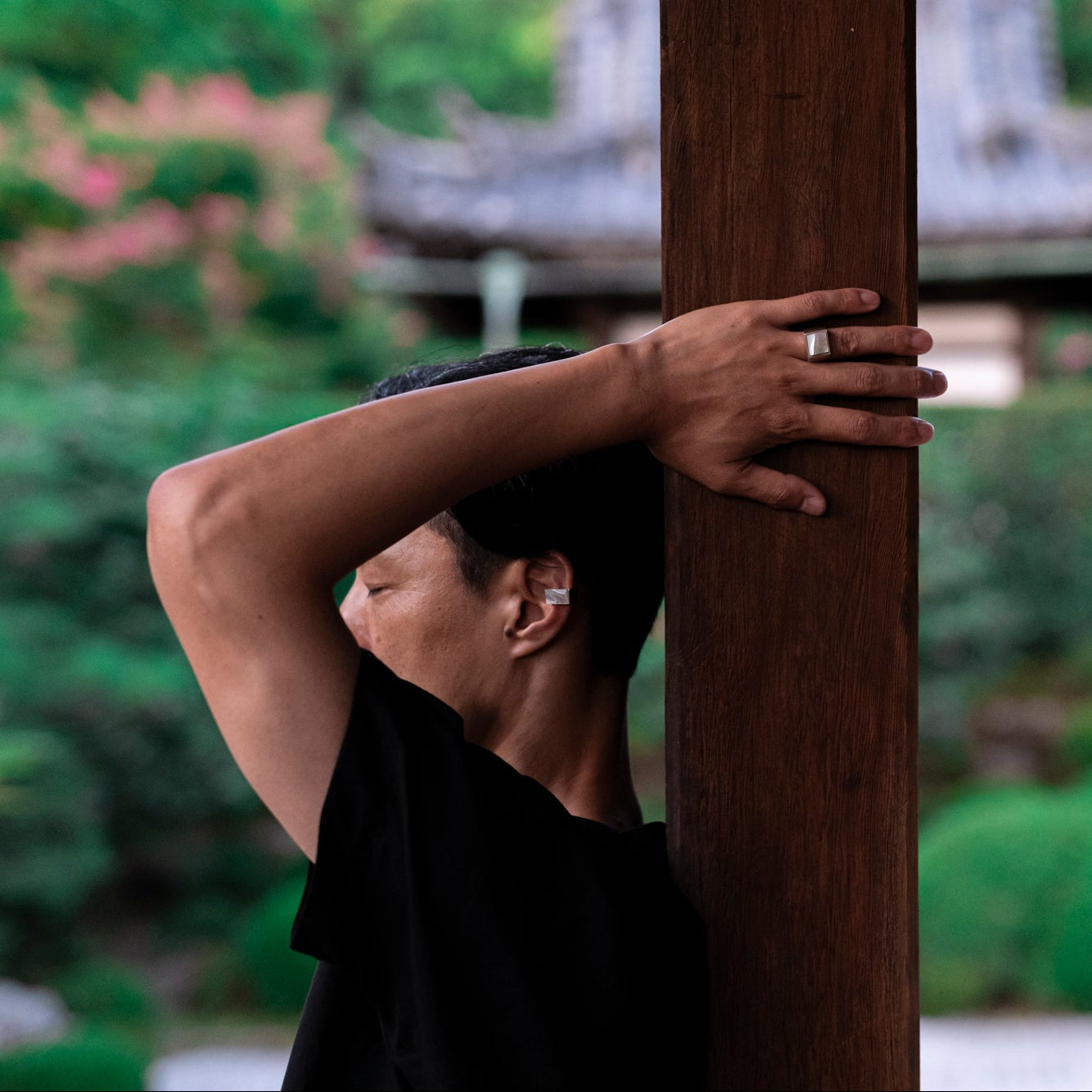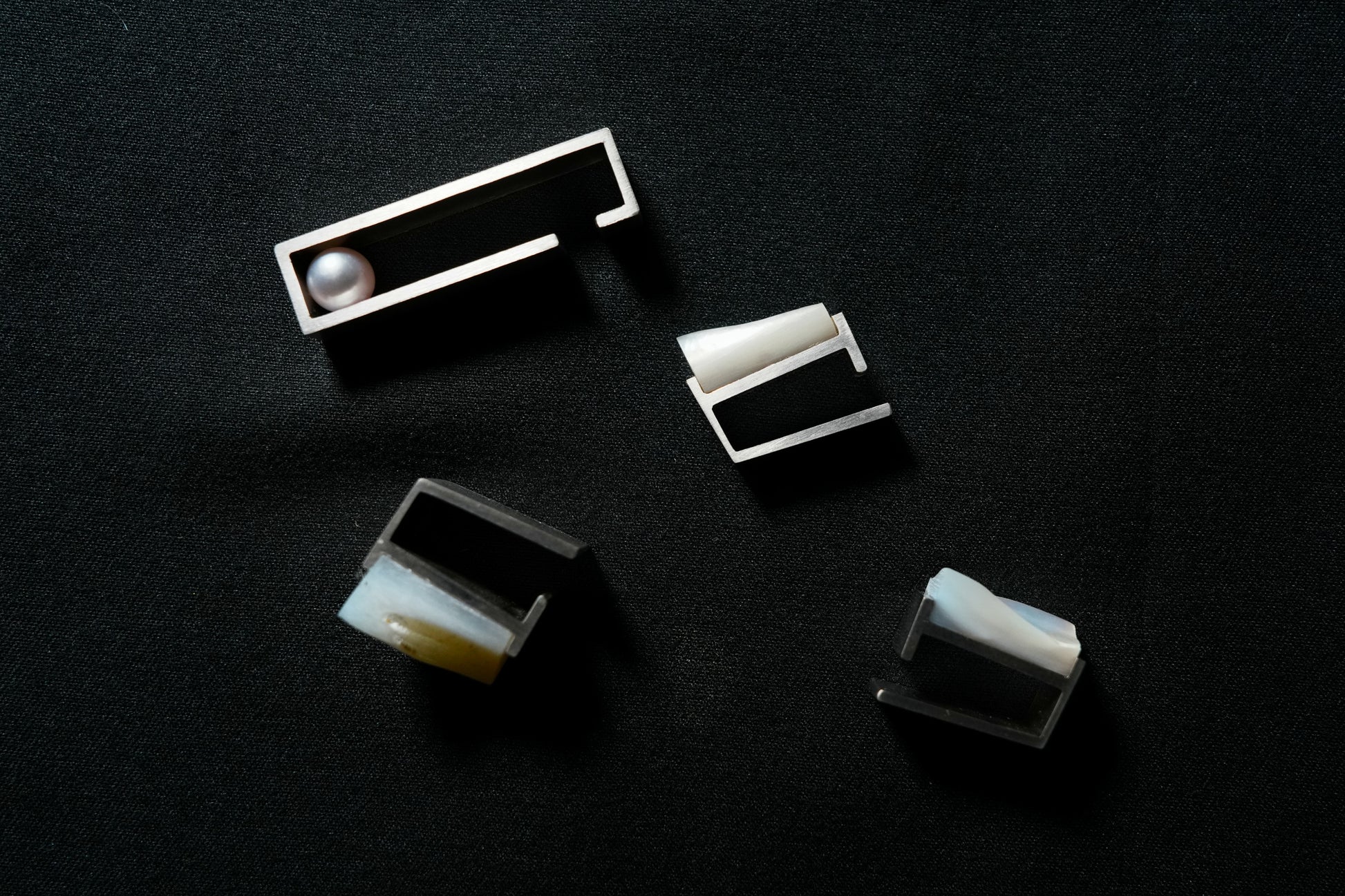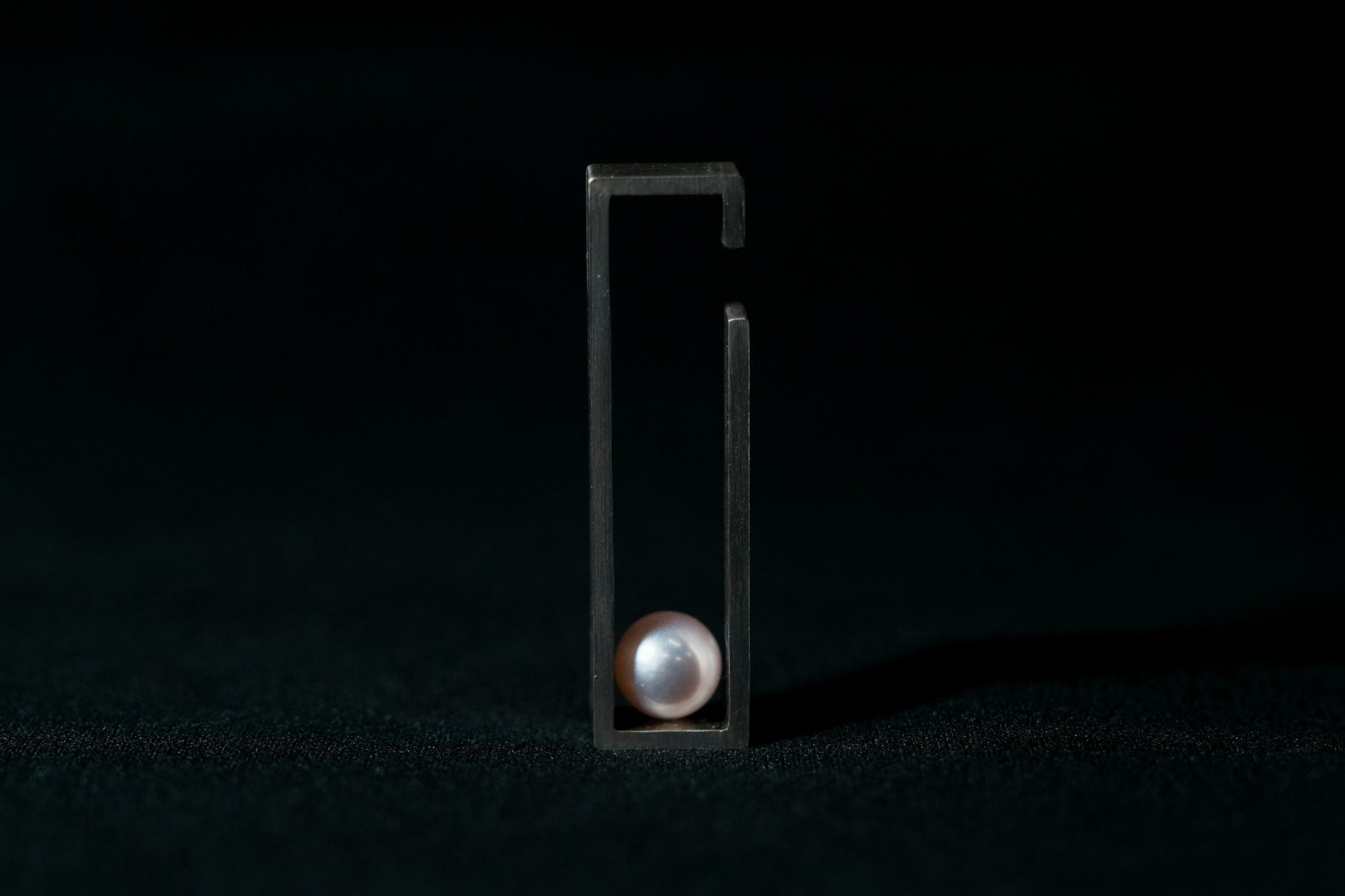 真珠母貝の自然なかたちをそのまま活かしたイヤーカフ。艶やかな表面が光を受けて、角度によって繊細にきらめきます。