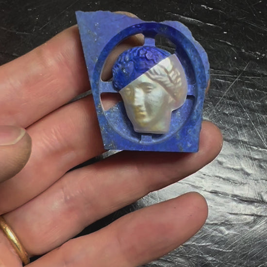 切削したカメオと真珠の特許技術を掛け合わせたカメオリング。養殖した同じモチーフの真珠層を接着することで、異なる素材同士の融合を実現させました。