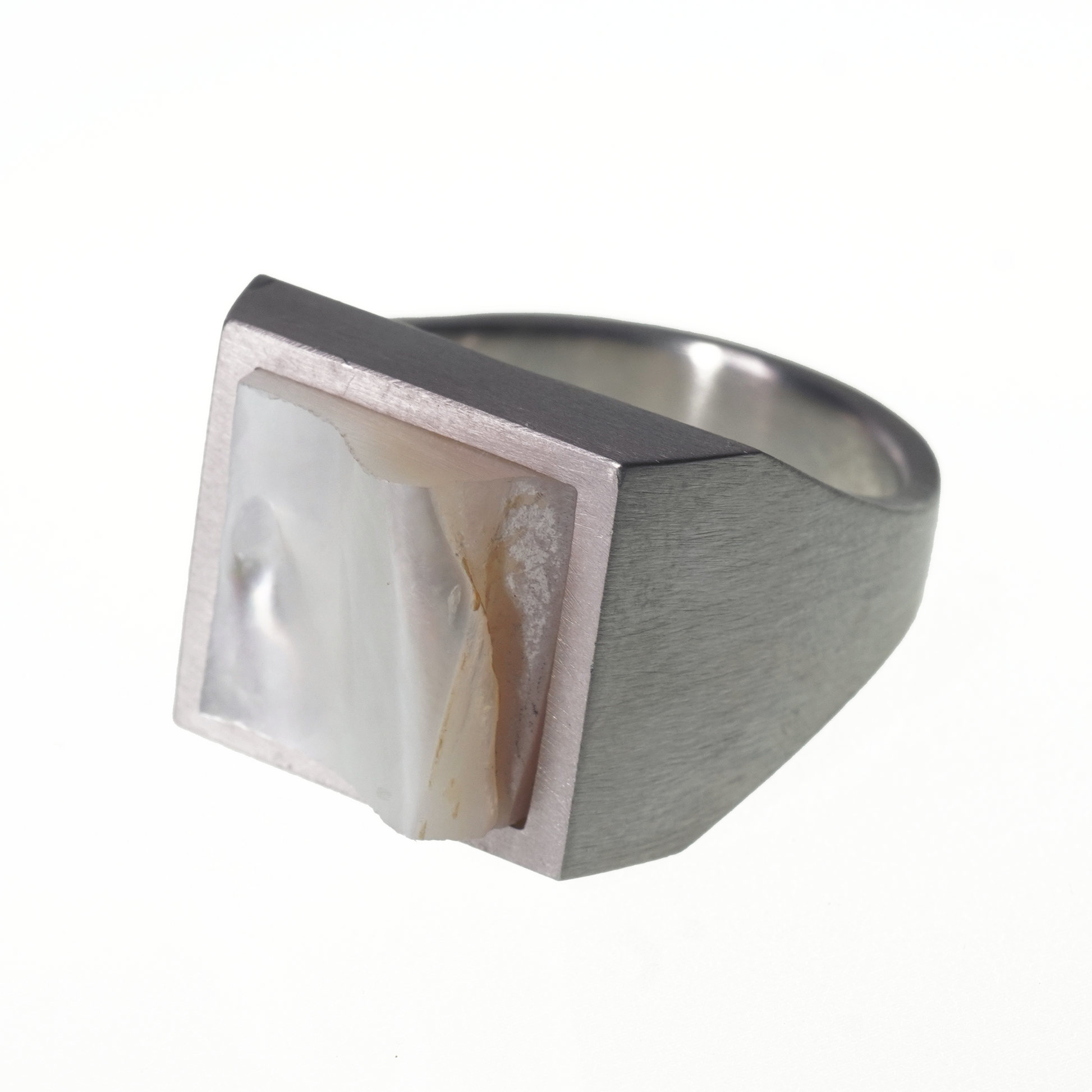 母貝の荒々しさを残しつつ、ミニマルに仕立てた一点。